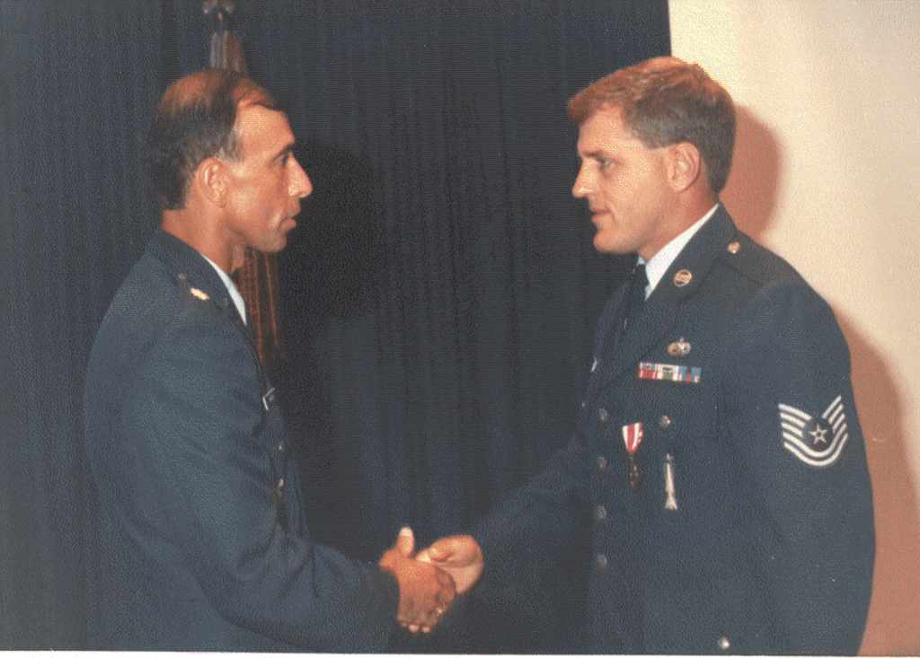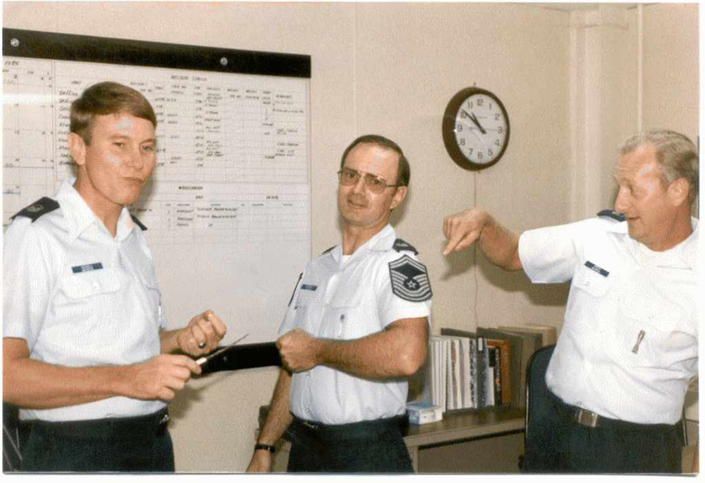 Ray and Gary mess with the squadron presentation medal