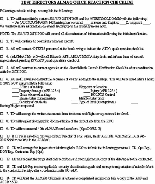 ALMAG checklists